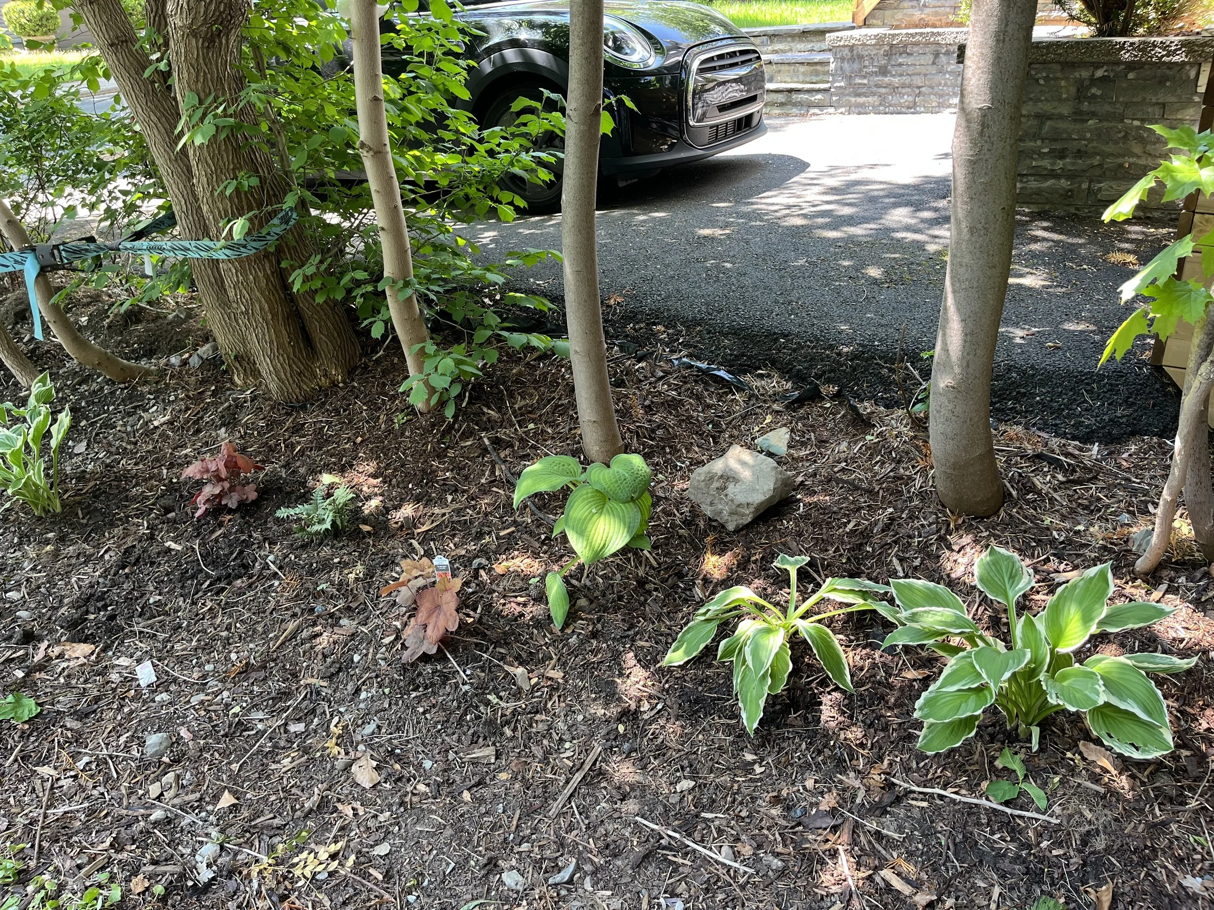 Existing hostas were divided and replanted throughout the garden to create a more unified, flowing design. The result? A cohesive, textural landscape that looks fantastic now—and will only get better as it fills in over time.